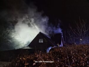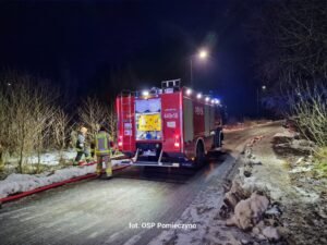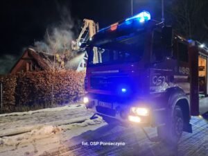 Paliło się poddasze budynku jednorodzinnego. W zdarzeniu brało udział 7 zastępów – łącznie 38 strażaków z Kartuz, Przodkowa, Pomieczyna, Smołdzina i Czeczewa. Na miejscu była również policja.