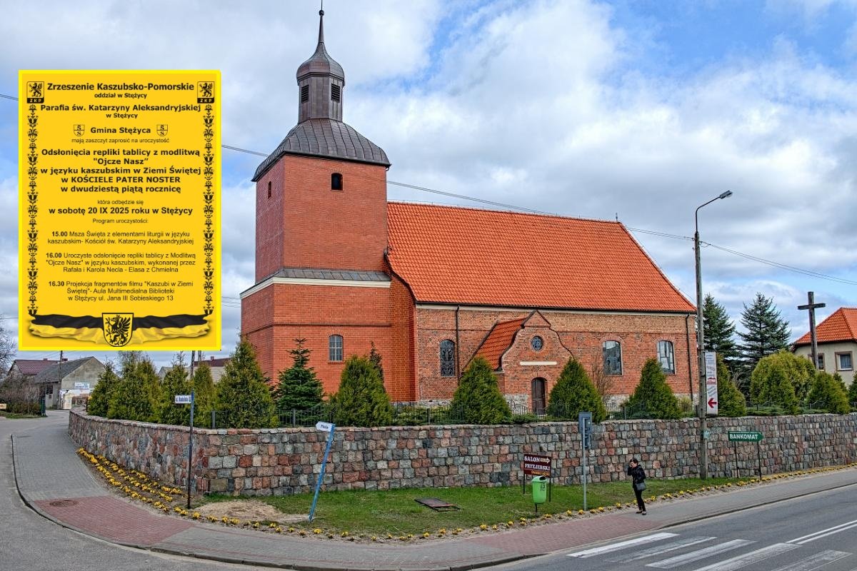 W sobotę, 20 września 2025 roku, w Stężycy odbędzie się wyjątkowa uroczystość odsłonięcia repliki tablicy z modlitwą „Ojcze Nasz” w języku kaszubskim. Oryginał od 25 lat znajduje się w Kościele Pater Noster w Ziemi Świętej, będąc symbolem obecności Kaszubów w duchowej przestrzeni Jerozolimy.