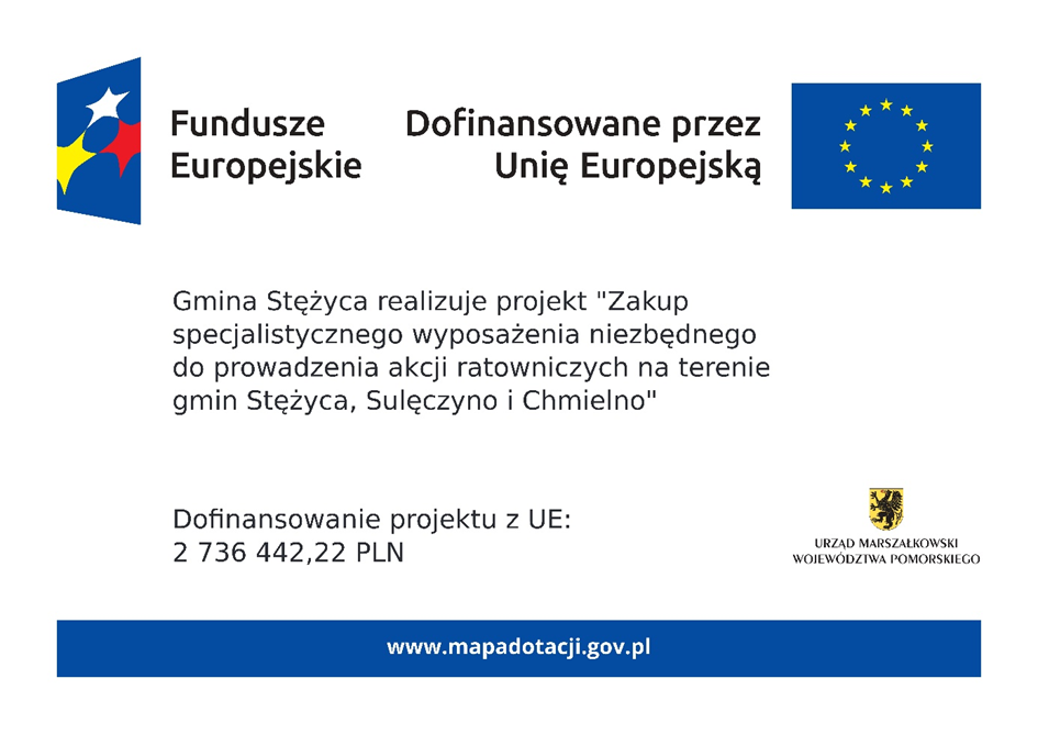 Gmina Stężyca pozyskała dofinansowanie z Unii Europejskiej na realizację projektu dotyczącego doposażenia jednostek Ochotniczych Straży Pożarnych. Wartość inwestycji wynosi blisko 4 mln zł, z czego ponad 2,7 mln zł stanowią środki unijne.