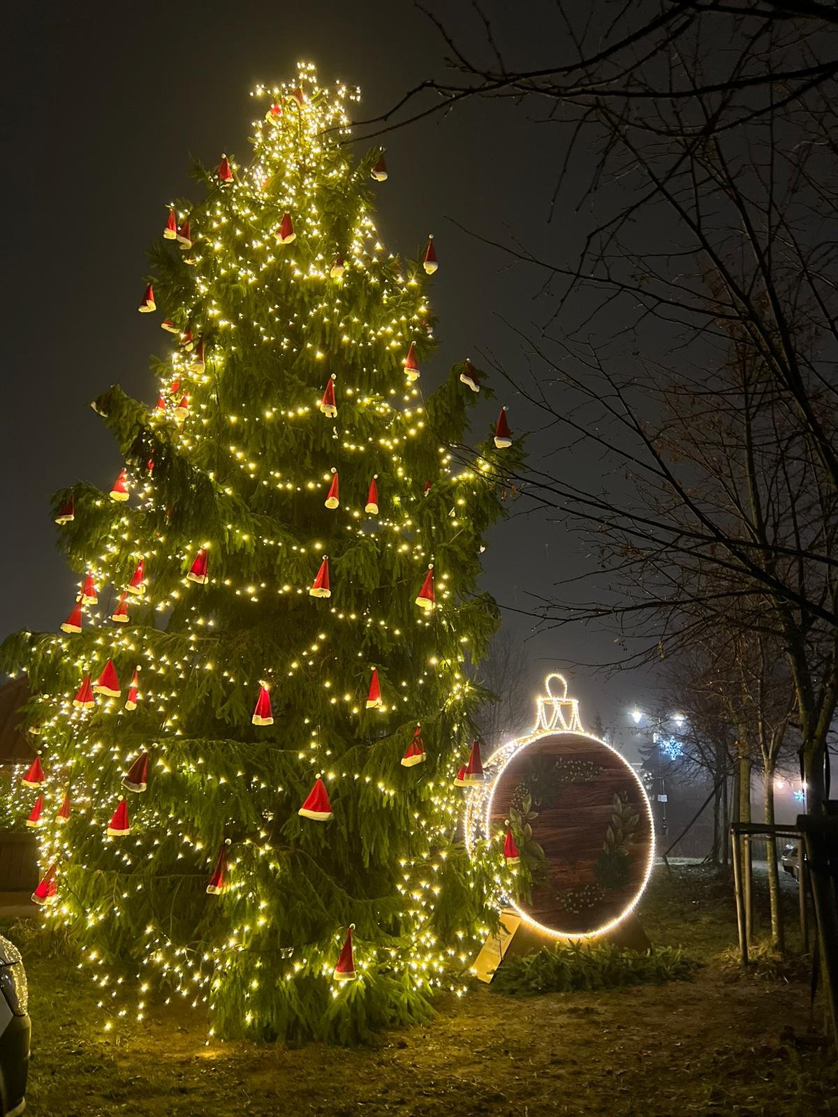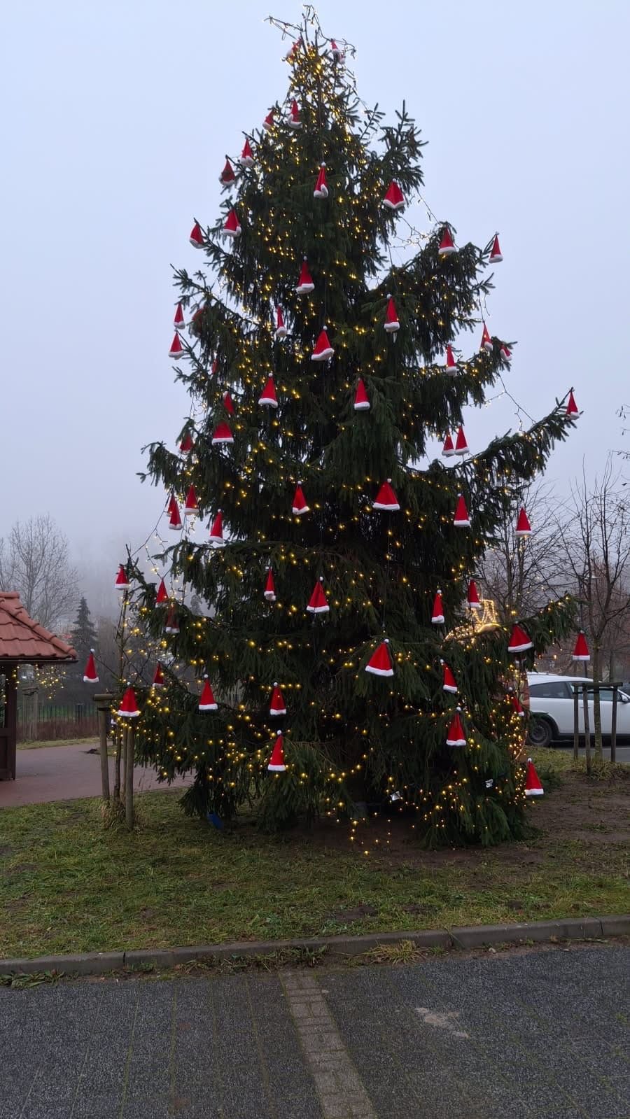 Przy parafii Wniebowzięcia Najświętszej Maryi Panny w Żukowie pojawiła się wyjątkowa, świąteczna choinka ufundowana przez Spółkę Komunalną w Żukowie. We współpracy z Urzędem Gminy Żukowo drzewko zostało udekorowane świeczkami oraz symbolicznymi czapkami, tworząc nastrojową i pełną uroku przestrzeń.