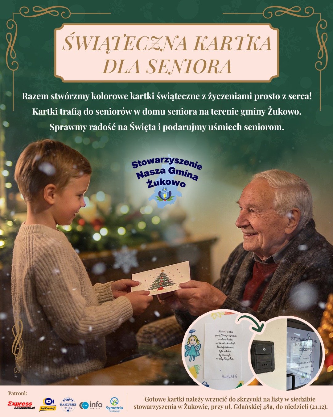 Gotowe kartki należy wrzucić do skrzynki pocztowej znajdującej się w siedzibie stowarzyszenia w Żukowie przy ul. Gdańskiej 48A.