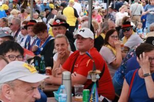 Dopisała również publiczność – do Szemuda przybyli bowiem Kaszubi z najróżniejszych zakątków regionu, np. z Helu, a także kraju, np. z Warszawy. Nieodzownym elementem Zjazdu Kaszubów, oprócz tego, co dzieje się na głównej scenie, są “muzyczne strefy”, które tworzą Kaszubi grający na instrumentach. Były więc tańce, zabawa i biesiadowanie przy stołach.