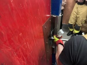 Szkolenie dla strażaków OSP Egiertowo z technik siłowego dostępu do pomieszczeń