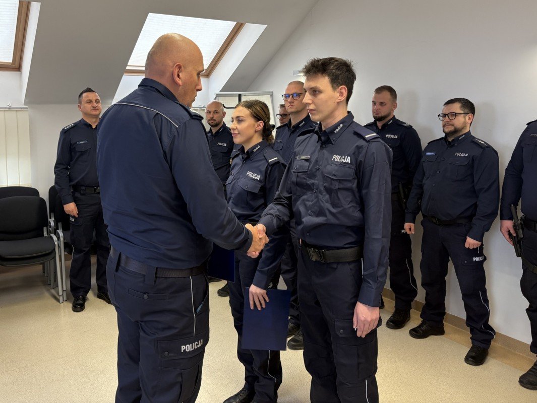 Uroczystość rozpoczęła się od wręczenia aktów mianowania, których dokonał Komendant Powiatowy Policji w Kartuzach mł. insp. Grzegorz Piechowski. Na stopień sierżanta Policji awans otrzymali: st. post. Filip Cirocki oraz st. post. Dominika Gorlikowska. Na stopień młodszego aspiranta Policji mianowany został sierż. sztab. Kamil Kęsicki. Dodatkowo wręczono list gratulacyjny asp. sztab. Romualdowi Wierzbie za zajęcie I miejsca w Turnieju Służby Dyżurnej jednostek województwa pomorskiego.