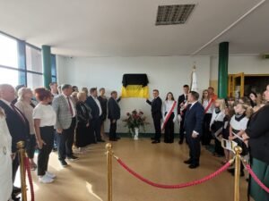 Na zakończenie odsłonięto pamiątkową tablicę poświęconą patronowi szkoły. Uroczystość zwieńczyło odśpiewanie hymnu oraz spotkania uczniów z wychowawcami. Goście zostali zaproszeni na poczęstunek przygotowany w szkolnych murach.