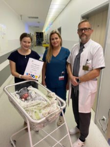 W imieniu starosty powiatu kartuskiego Bogdany Łapy list gratulacyjny i bon podarunkowy w wysokości 1 000 złotych dla pierwszego dziecka urodzonego w pow. kartuskim w 2025 roku wręczyli ordynator oddziału ginekologiczno-położniczego Grzegorz Piskulak wraz z Moniką Klasa-Hinca, lekarzem – starszym asystentem oddziału.