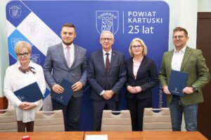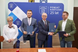 Dziś starosta kartuski Bogdan Łapa oraz etatowy członek Zarządu Powiatu Kartuskiego Paweł Kowalewski, radny powiatu kartuskiego, przy kontrasygnacie skarbnika Zofii Walkowiak, podpisali umowę na budowę dwóch nowoczesnych placówek opiekuńczo-wychowawczych dla dzieci.
