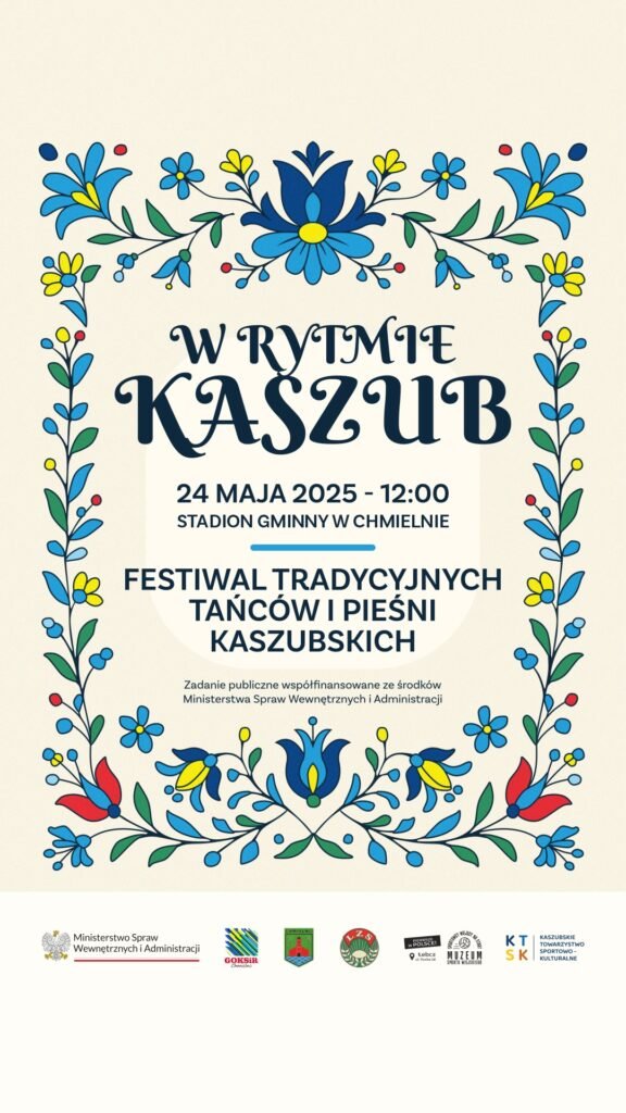 24 maja 2025 roku na stadionie gminnym w Chmielnie odbędzie się festiwal „W rytmie Kaszub” – przegląd tradycyjnej muzyki, tańca i języka kaszubskiego. Rozpoczęcie zaplanowano na godzinę 12.00.