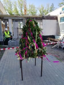 Zgodnie z budowlaną tradycją, zawieszenie wiechy to nie tylko znak widocznego postępu inwestycji, ale także doskonała okazja do wyrażenia wdzięczności wszystkim osobom zaangażowanym w jej realizację – wykonawcy, inspektorowi nadzoru oraz ekipie budowlanej z kierownikiem na czele.