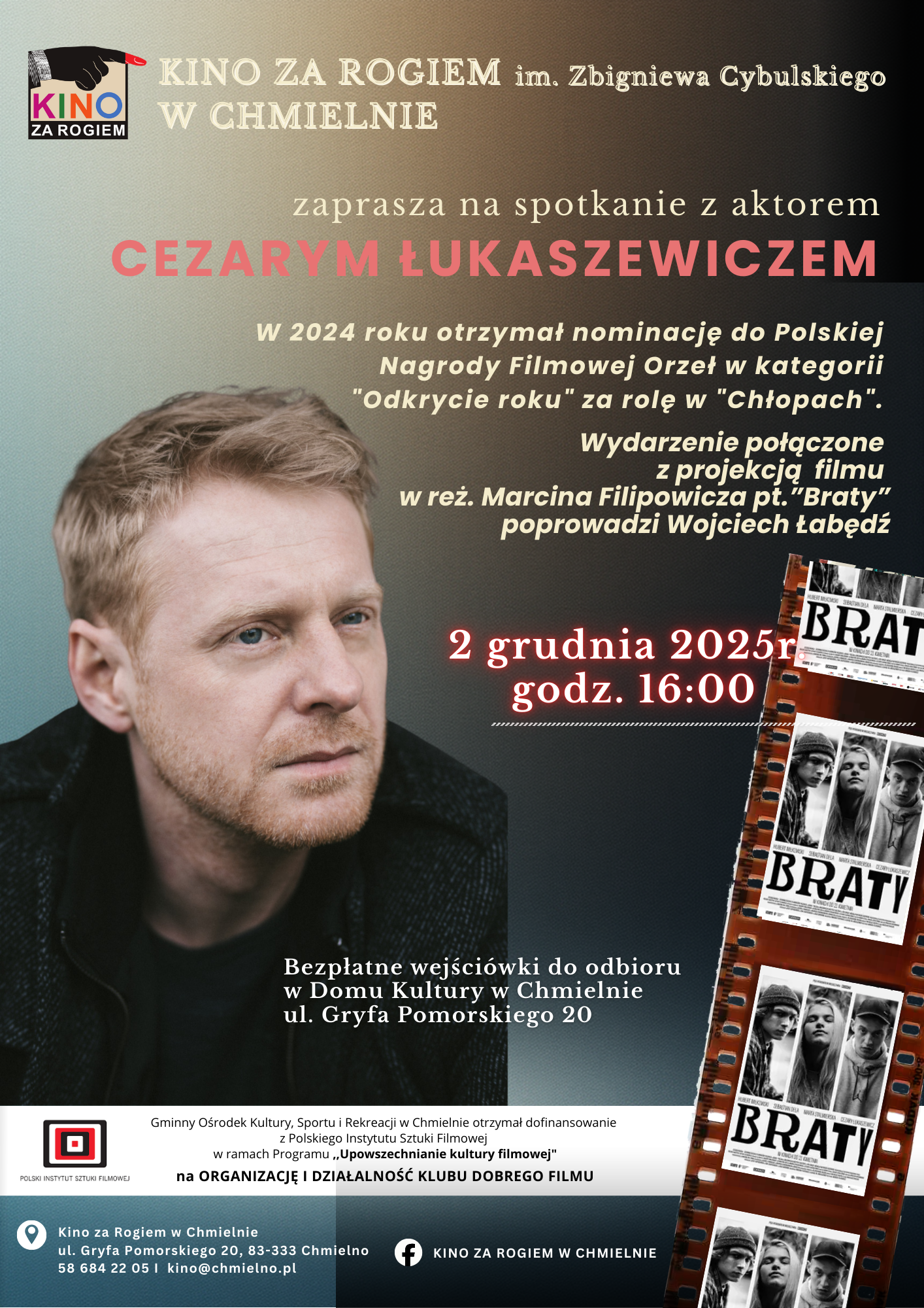 Spotkanie będzie połączone z projekcją poruszającego filmu „Braty” w reżyserii Marcina Filipowicza, który zdobył uznanie zarówno widzów, jak i krytyków za swoją emocjonalną głębię oraz niezwykle autentyczną historię. Seans oraz rozmowa z aktorem zapowiadają się jako wydarzenie pełne refleksji, inspiracji i prawdziwego kontaktu ze sztuką.