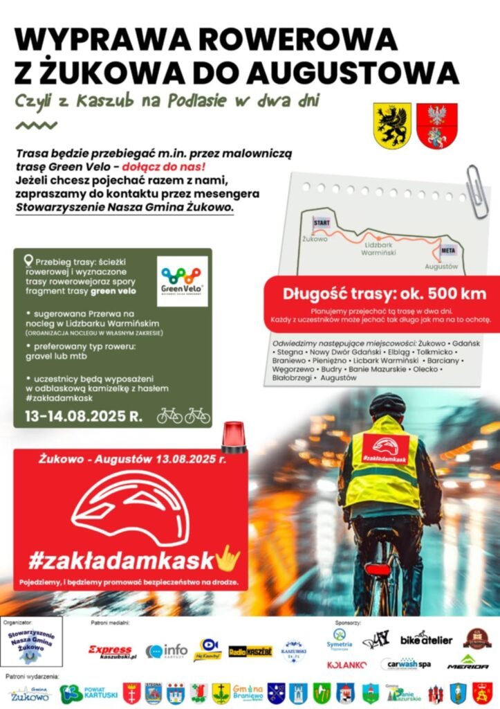 W dniach 13–14 sierpnia 2025 roku planowana jest wyjątkowa wyprawa rowerowa z Żukowa do Augustowa. Trasa o długości około 500 km przebiegać będzie m.in. przez malowniczy szlak Green Velo, wiodąc przez liczne miasta i miejscowości Polski północno-wschodniej.