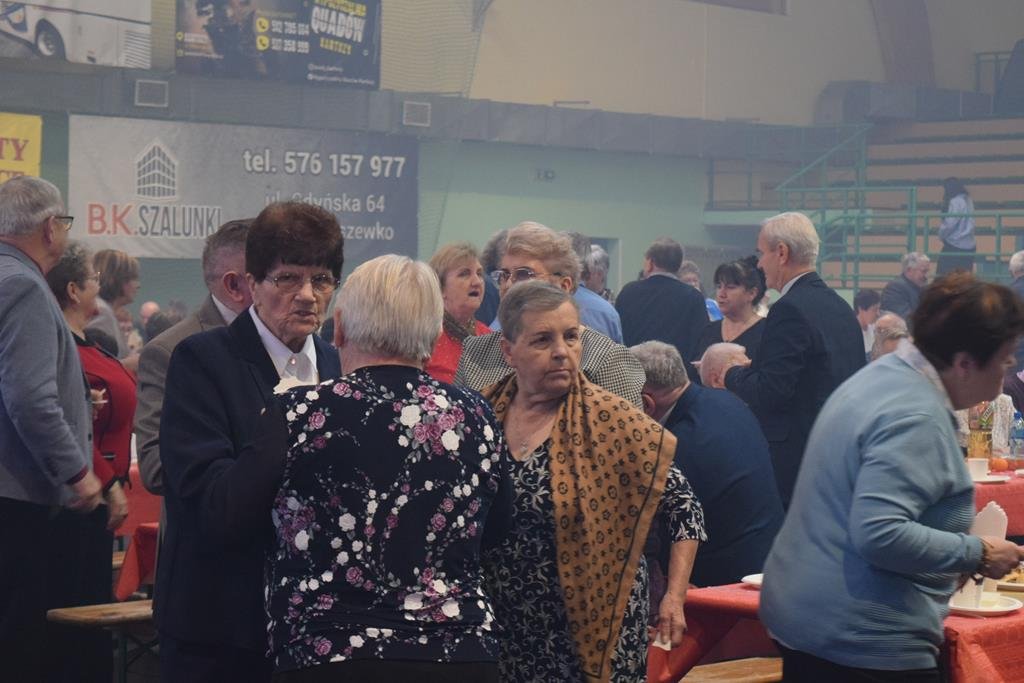 Spotkanie rozpoczęło się o godzinie 11.00. Dla uczestników przygotowano liczne atrakcje, w tym poczęstunek, wspólne śpiewanie kolęd oraz szereg niespodzianek. Obecność zaproszonych gości, m.in. przewodniczącego Rady Powiatu Kartuskiego Mieczysława Woźniaka, wiceprzewodniczących Rady Gminy oraz proboszczów parafii z terenu gminy, dodatkowo podkreśliła rangę wydarzenia.