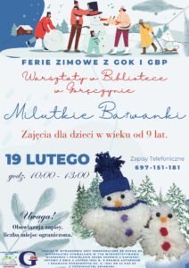 Drugie wydarzenie to „Warsztaty Milutkie Baławanki”, które odbędą się 19 lutego w Bibliotece w Goręczynie. To idealna propozycja dla dzieci i ich rodziców, którzy chcą spędzić czas w kreatywny sposób. Zapisy przyjmowane są pod numerem 697-151-181.