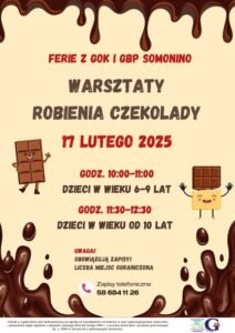 Pierwszą propozycją są „Warsztaty robienia czekolady”, które odbędą się 17 lutego w GOK Somonino. Uczestnicy będą mieli szansę zgłębić tajniki czekoladowego rzemiosła i stworzyć własne słodkie dzieła. Zapisy prowadzone są pod numerem telefonu 58 684 11 26.