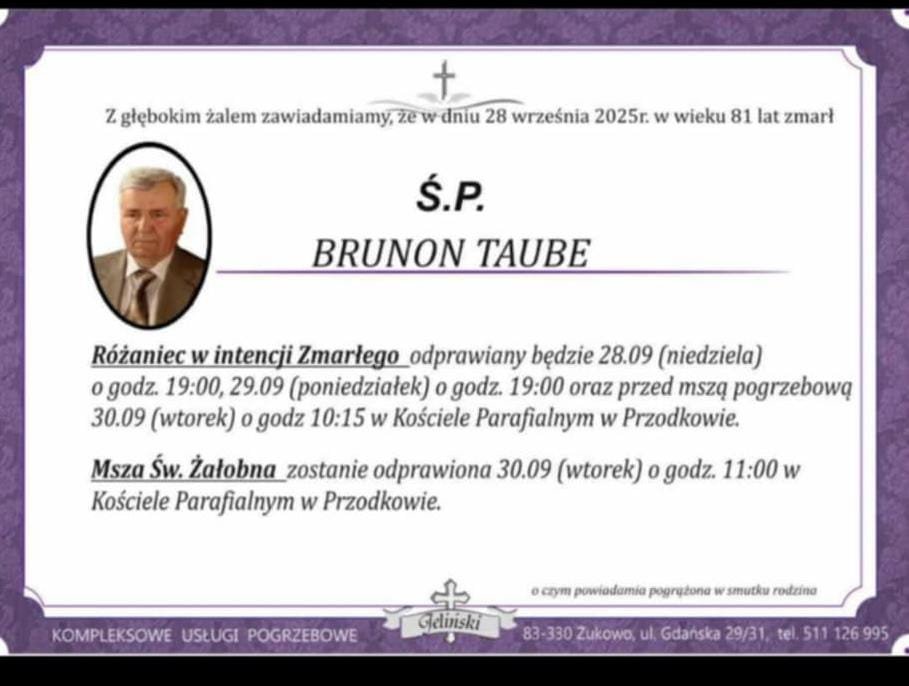 Z głębokim żalem mieszkańcy gminy Przodkowo przyjęli wiadomość o śmierci Brunona Taube, wieloletniego samorządowca i byłego wójta.